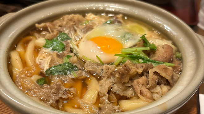 甘辛いつゆが食欲をそそる、すき焼き風鍋焼きうどんを作ってみましょう。旨味たっぷりの牛肉や味の染みたうどんに卵を絡めて食べる、ちょっと贅沢な味わいの一品。簡単に作れるので、ぜひレパートリーに加えてみてくださいね。