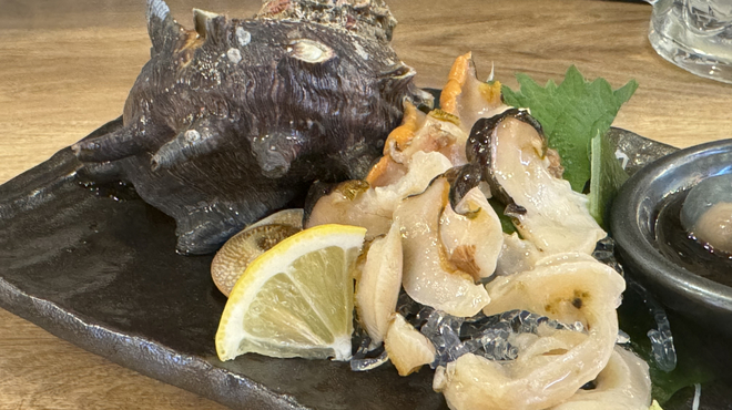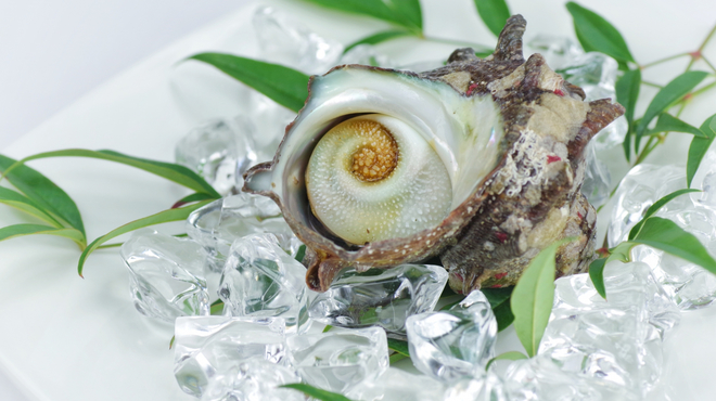 サザエの活け造りは、強い磯の風味を存分に楽しむことができます。ただし、ワタは生で食べることができないので、必ずゆでたものを添えましょう。
