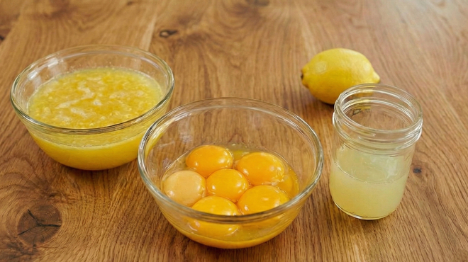 オランデーズソースの材料はとてもシンプルで、卵黄、澄ましバター、レモン果汁(またはビネガー)の3つが基本です。