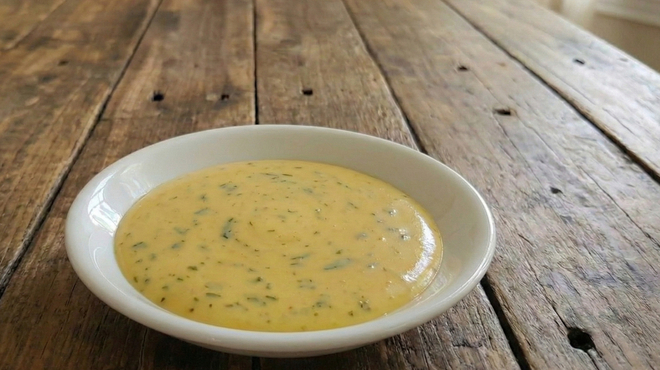 使用する植物油の量もオランデーズソースに比べてとても多いため、もったりとした粘度の高い質感になります。