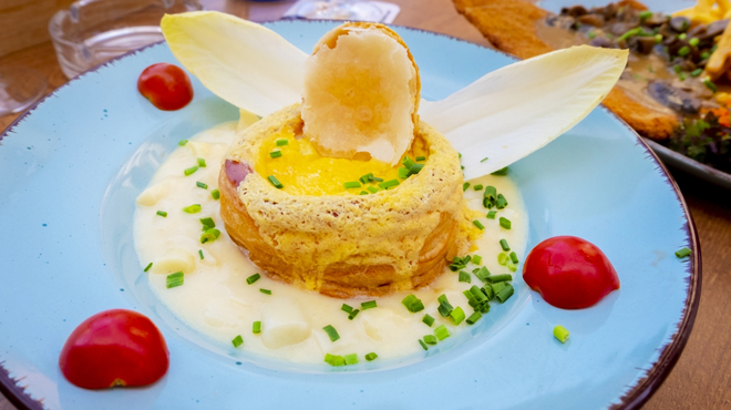 まろやかな半熟のポーチドエッグにコクと酸味のあるソースがよく合い、温かくとろみのある質感がパンと具材に一体感を与えてくれます。卵料理との相性がよいので、シンプルなオムレツにかけるのもおすすめです。