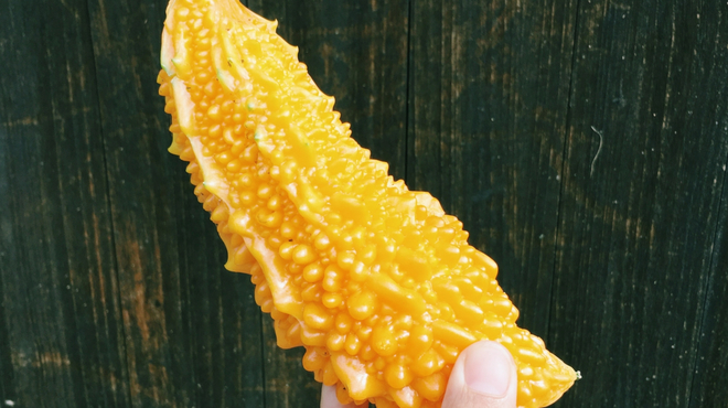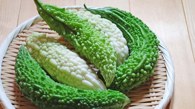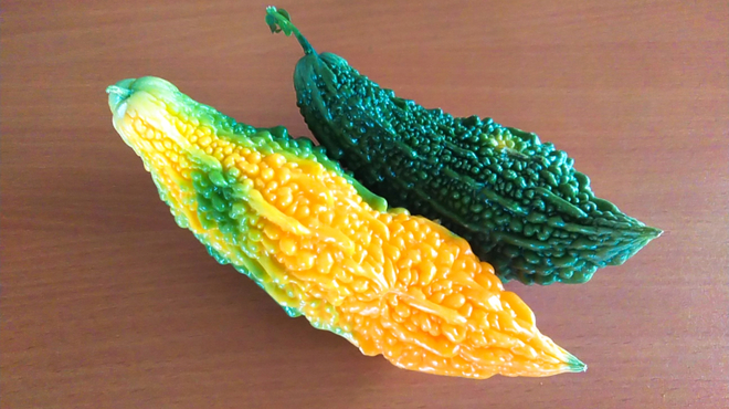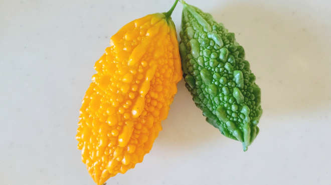 ゴーヤの苦味は「モモルデシン」という成分によるもので、未熟なうちは動物に食べられにくくする働きがあるといわれています。熟すにつれてこの成分が減るため、黄色いゴーヤは苦味がやわらぎ、やさしい味わいになるのです。