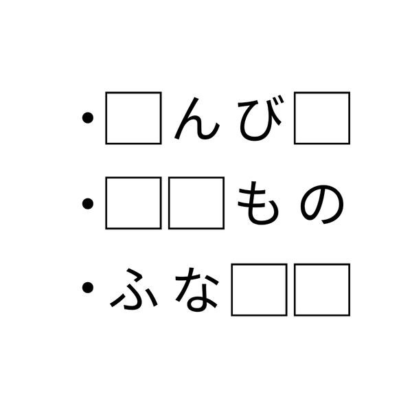 クイズです!四角に入る共通の2文字はなんでしょうか?海でとれる食材を使って作られる、ある食べ物の名前です。いろんな言葉を当てはめて、よーく考えてみてくださいね。