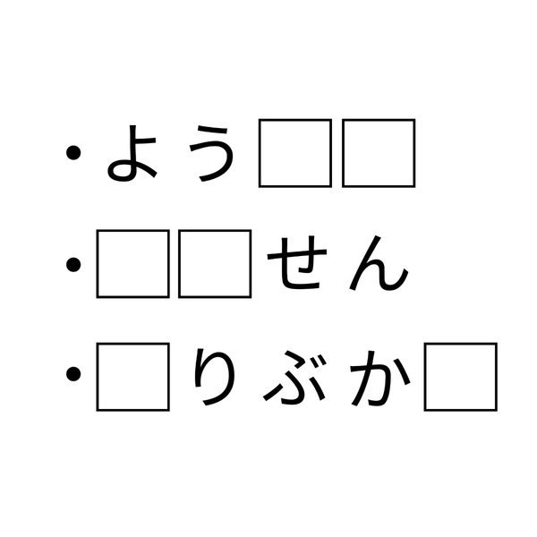 穴埋めクイズです!四角に入る共通の2文字はなんでしょうか?旨味たっぷりで、さまざまな料理で楽しまれている、ある食材の名前です。いろんな言葉を当てはめて、よーく考えてみてくださいね。