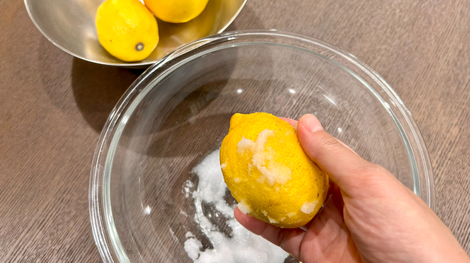 農薬・ワックス不使用の国産レモンは皮まで安心して食べられますが、軽くこすりながら水洗いしてから使いましょう。農薬やワックスを使用している国産レモンを皮ごと使いたい場合は、次のような下処理を行うと安心です。