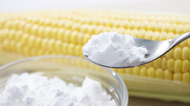 市販の粉砂糖には、湿気で固まりやすい性質を防ぐために、コーンスターチが加えられているものが多くあります。コーンスターチはとうもろこし由来のでんぷんで、吸湿性が低く、粉砂糖をサラサラに保つ役割を果たします。粒がとても細かくきめが細いため、水分や熱にすぐ溶け、粉類とも混ざりやすいのが特徴です。クセのない味わいとふんわりとした口当たりで、繊細な舌触りが求められるお菓子作りに幅広く使われています。