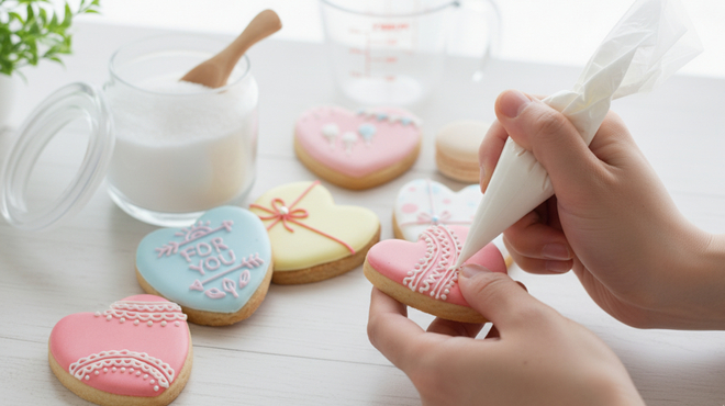 アイシングとは、粉砂糖を卵白や水と練り混ぜて作ったペーストのことです。お菓子にかけたり、絞り出して使います。食用の色素を入れればカラフルなデコレーションを楽しむこともできますよ。