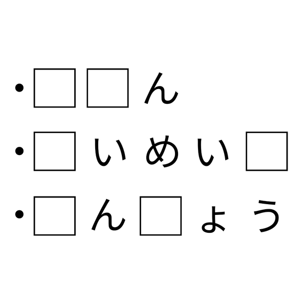 穴埋めクイズです!四角に入る共通の2文字はなんでしょうか?和食を作る際には欠かせない、ある食べ物の名前です。いろんな言葉を当てはめて、よーく考えてみてくださいね。