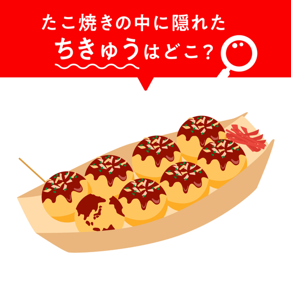 隠し絵クイズにチャレンジしてみませんか?イラストのたこ焼きの中に、地球が隠れています。さて、一体どこに隠れているのでしょうか?よーく見て探してみてくださいね。