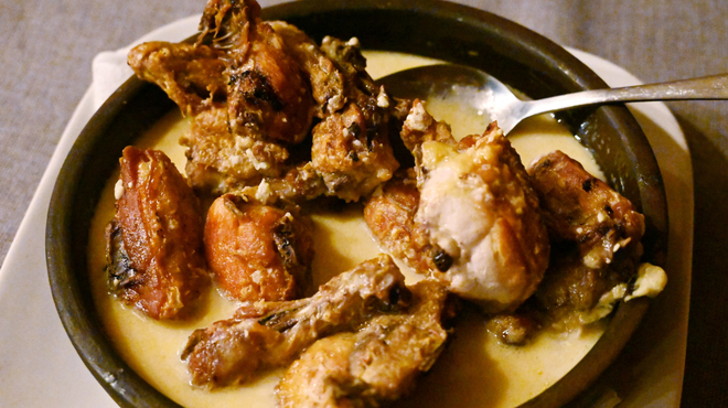 シュクメルリは、ヨーロッパの最東端に位置するジョージアに古くから伝わる、鶏肉とたっぷりのニンニクを使ったクリーミーな味わいの煮込み料理です。
