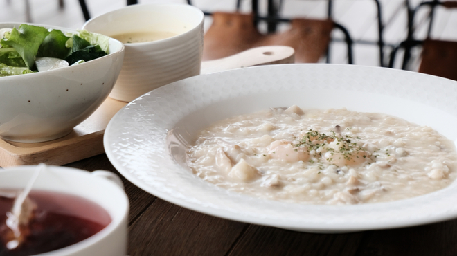 ソースにごはんを加えて弱火で混ぜながら煮込むと、濃厚でリッチな味わいのリゾットが完成します。お好みでチーズを加えてもおいしくいただけますよ。