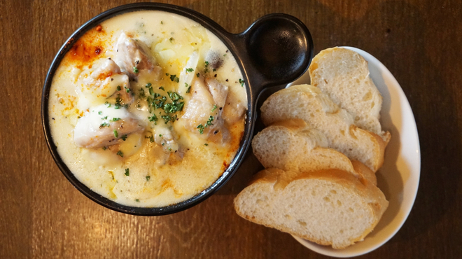 シュクメルリの濃厚なガーリックソースは、パンにぴったり!スライスしたフランスパンやバゲットをソースにディップして食べると、旨みを余すことなく楽しめます。