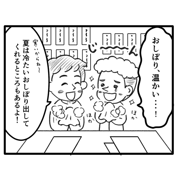 アメリカから来た彼が驚いたものとは、「温かいおしぼり」でした! 冬はホカホカ温かく、夏はひんやり冷たいおしぼりは、食事前にほっとするひと時ですよね。日本では一般的なのであまり意識することはありませんが、欧米ではほぼ見かけないもの。しかもカジュアルな居酒屋でこんなサービスがあることに、とても驚いたようですよ。