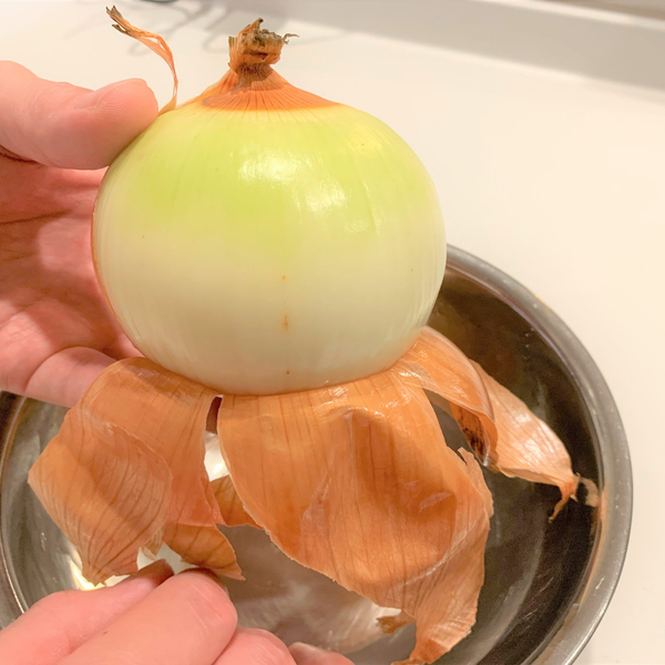 調理を始める前に玉ねぎを皮ごと水に浸しておけば、皮むきの手間と時間を短縮できます!ぜひお試しくださいね。