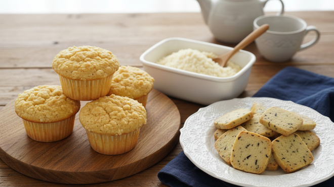 おからパウダーは、豆腐を作るときに出るおからを乾燥させて粉末にしたものです。クッキーやマフィン、ケーキに使用すると、しっとりとした食感を作り出せます。しかし、アーモンドプードルの風味よりは淡泊で、おから特有の風味が強い場合があるため、好みやレシピに合わせて調整しましょう。