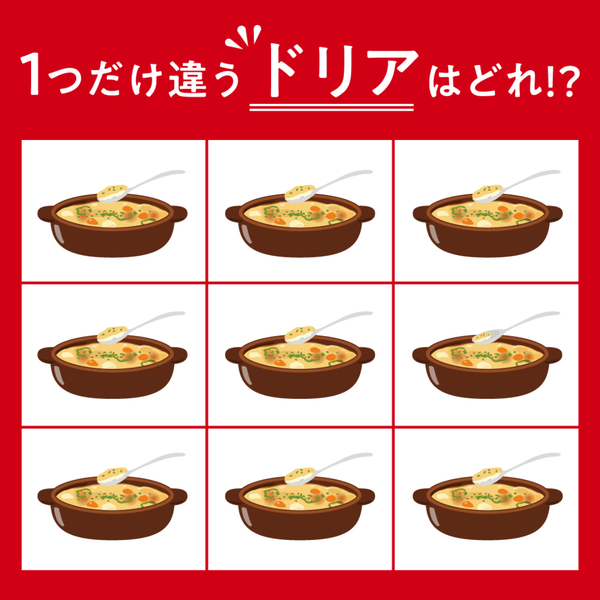違う絵さがしです!イラストの中に、1つだけ違うドリアがあります。一体どのドリアでしょうか?よーく見比べて探してみてくださいね。