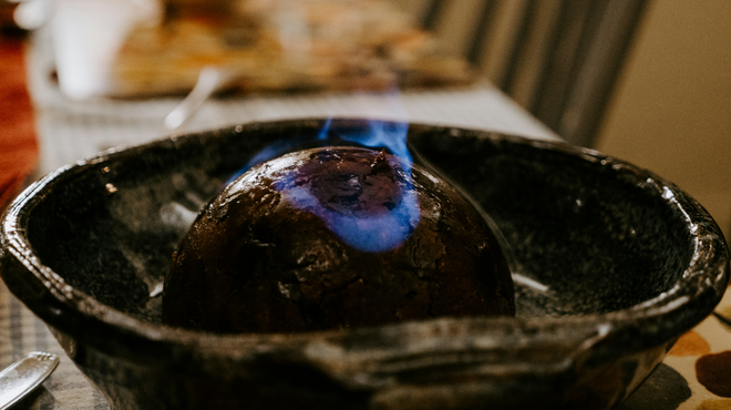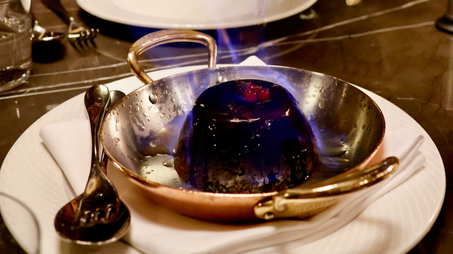 一か月熟成させたクリスマスプディングは、クリスマスディナーのクライマックスに登場します。以下でどのように食べられているのか、確認してみましょう。