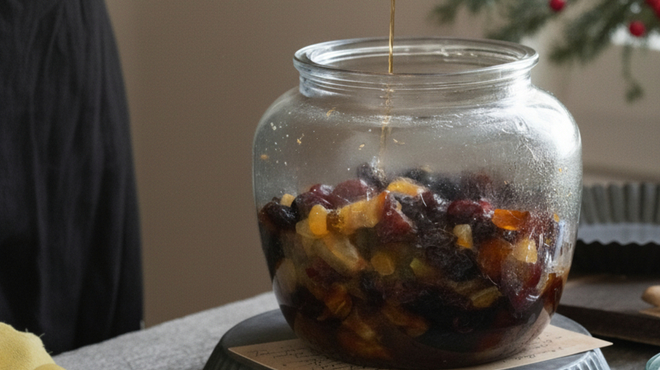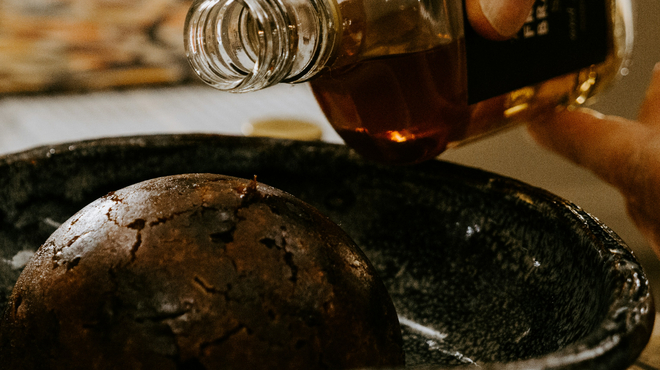 蒸しあがったクリスマスプディングは一か月間ほど涼しい場所で保存して、ときどきラム酒やブランデーをかけながら熟成させます。熟成期間の間にドライフルーツの風味が生地全体に染み渡り、より深い味わいに仕上がると言われており、こういった手間と時間をかけて、それぞれの家庭で異なる味わいのクリスマスプディングが完成するのです。
