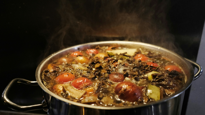 生地ができたら陶器の型に流し込み、蓋をしてじっくりと蒸します。時間は4時間以上、サイズが大きければ10時間を超えることもあるそうです。