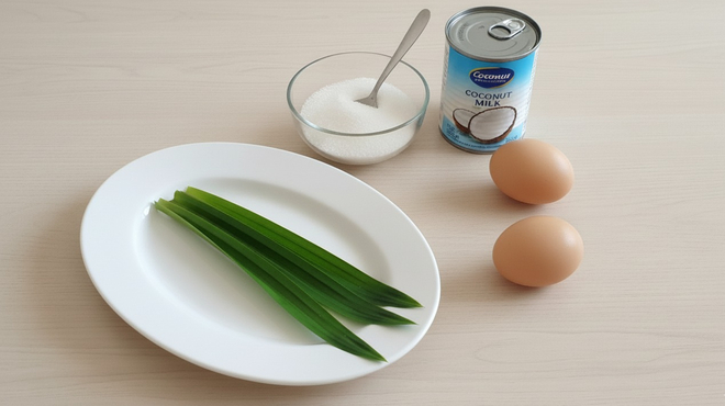 ココナッツミルクや卵、砂糖、パンダンリーフというハーブ。