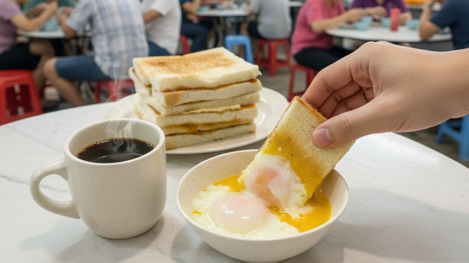 カヤトーストは、シンガポールの国民的朝ごはんといわれるほど、朝ごはんに人気のメニュー。コーヒーと一緒に食べるのが定番で、多くのコーヒーショップの朝メニューにはカヤトーストがあるのだとか。