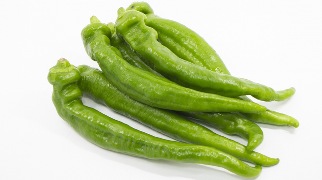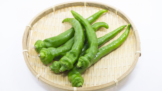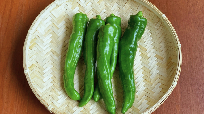 ししとうよりも大きくて肉厚、ピーマンよりもやわらかく、ほんのり甘くてクセが少ないので、焼くだけでもおいしく、さまざまな料理に使いやすいですよ。
