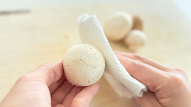 湿気に弱いマッシュルームに水洗いは厳禁。傷みやすくなるだけでなく、風味も落ちてしまいます。汚れやほこりが気になるときは、キッチンペーパー や布巾で拭き取りましょう。