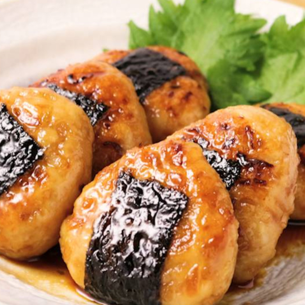 キュートな見た目にテンションが上がる!おにぎり海苔つくねのご紹介です。鶏ひき肉に玉ねぎなどを混ぜて三角形に成形し、小さなおにぎりのようにのりを巻いて香ばしく焼きました。鶏ひき肉の旨味としょうゆやみりんなどの甘辛い味つけがマッチして、とってもおいしいですよ。ごま油の香ばしい香りもたまりません。