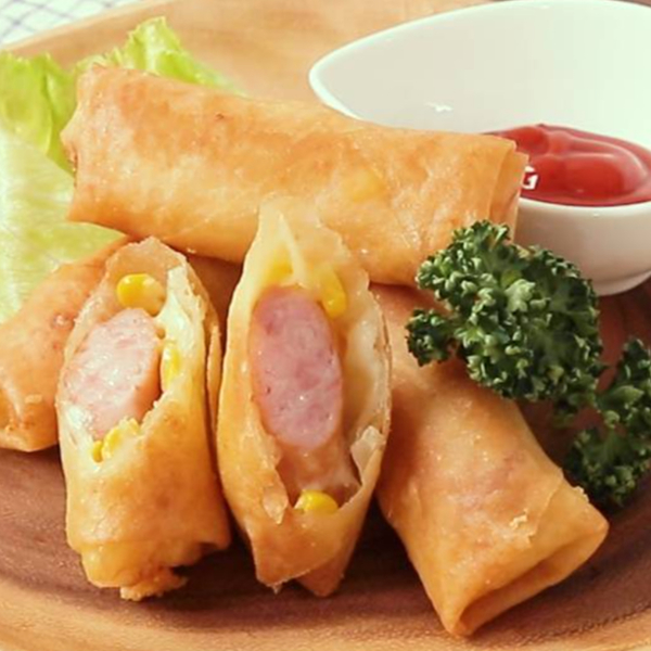 パリパリ食感がクセになる、ウインナーとコーンのチーズ春巻きはいかがですか?ウインナーとコーン、チーズを春巻きの皮で巻き、こんがり揚げるだけで完成です。旨味たっぷりのウインナーと甘いコーン、チーズのコクが相性抜群!ひと口食べれば、お箸が止まらなくなってしまいますよ。ぜひ、ケチャップをつけて食べてみてくださいね。