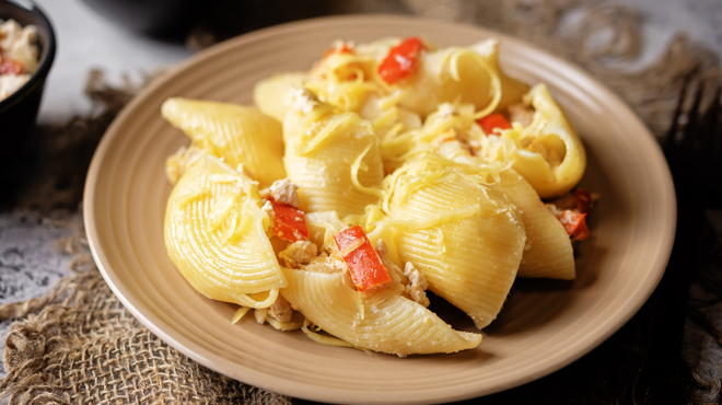 貝殻のように小さく巻いた形のパスタです。トマトソースやクリームソースと合わせることが多いですが、貝殻のような形状を活かして中に具材を入れることもあります。