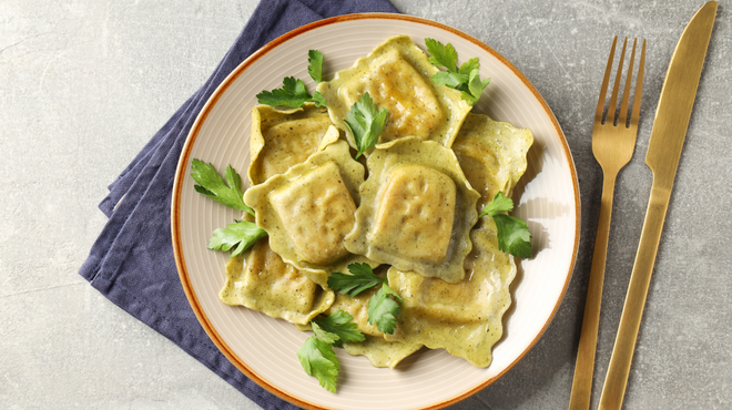 パスタをより楽しみたいときは、ラビオリを皮から手作りしてみてはいかがでしょうか?もちもちと歯ごたえのよい皮の中に、トマトの酸味がほどよく効いたひき肉がたっぷり詰まっていて、おいしいですよ。ぜひチャレンジしてみてくださいね。