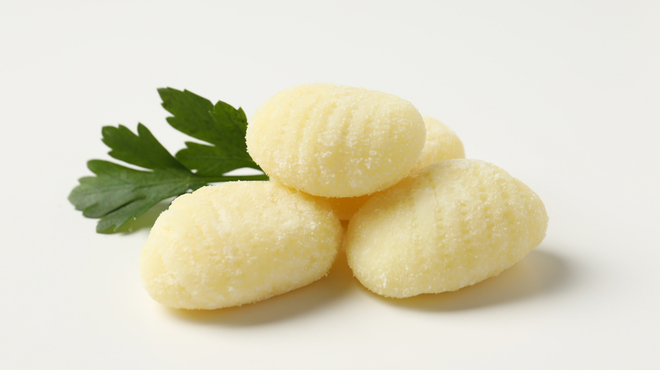 小さな団子状でもちもちとした食感をしており、バターやクリームソース、トマトソースなどを絡めていただきます。