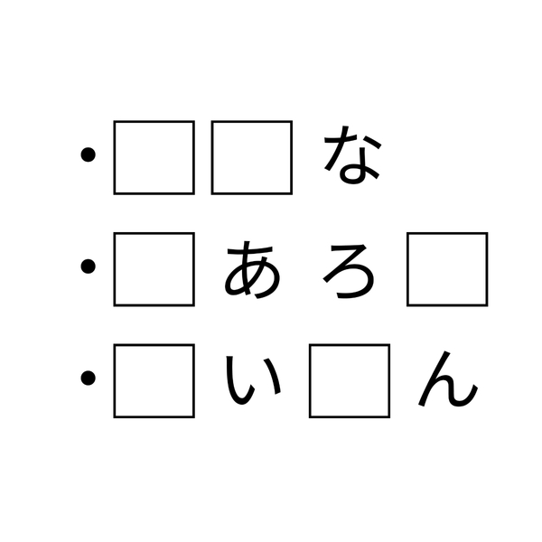 穴埋めクイズです!四角に入る共通の2文字はなんでしょうか?プリプリの食感が魅力的な、ある食べ物の名前ですよ。いろんな言葉を当てはめて、よーく考えてみてくださいね。