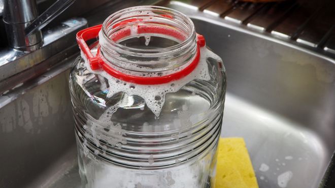 ガラス瓶と蓋や、パッキンなどのその他のパーツがあれば、分解してよく洗います。