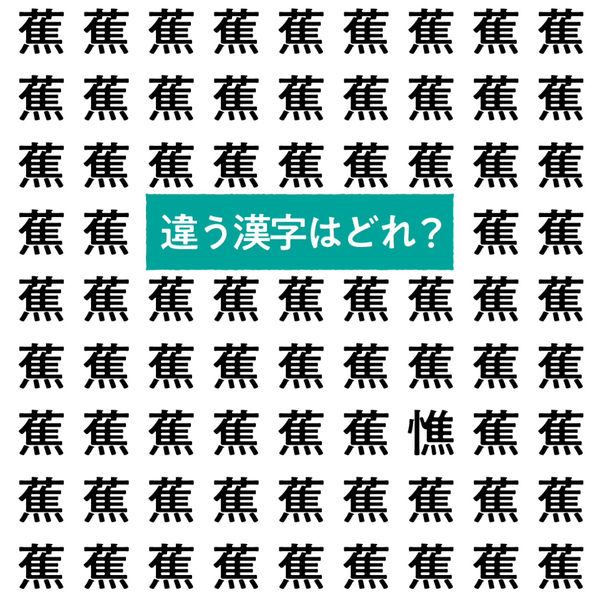 【漢字間違い探し】“蕉”の中にあるひとつだけ違う文字はどれ?すぐにわかったらスゴい正解は…