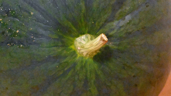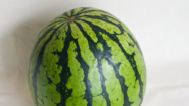 まずはすいかの皮をチェックします。皮にツヤがあって、縞模様が太く濃いすいかは、甘みが強い傾向があります。逆に、縞模様がぼんやりしていたり、線が細いすいかは水っぽく、味が薄いことも。また、キズやへこみがあるものは傷んでいる可能性があるので避けましょう。