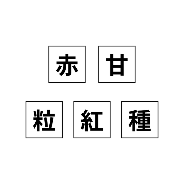 「赤」「甘」「粒」「紅」「種」の5つの漢字が並んでいます。じつはこれらの漢字は、ある食べ物から連想する漢字を挙げてもらうアンケートで、多かった回答を並べたもの。いったいどんな食べ物から思い浮かべたのか分りますか…?よーく考えて、答えを当ててみてくださいね。