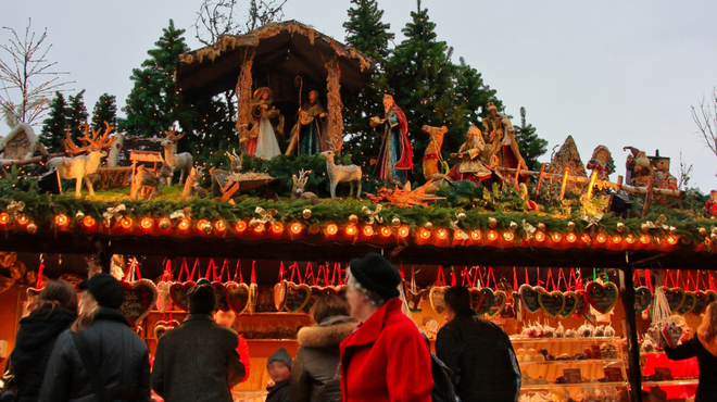 クリスマスマーケットとは、クリスマスまでの約4週間にさまざまな都市で行われるイベントで、きらびやかな装飾やライトアップに彩られた広場で、料理や伝統工芸品などの屋台を回って楽しむものです。発祥は14世紀ごろのドイツと言われており、そこから世界各地に広まって、近年は日本でも定番のイベントになってきました。