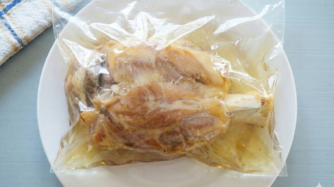塩漬けにすることで、肉の臭みが消え、味が均一に染み込みやすくなるんですよ。