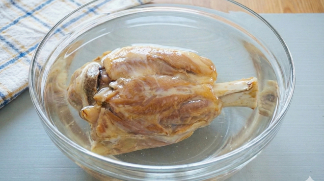 塩抜きをするのにはいくつか理由がありますが、肉全体の塩分を均一にすること、そして、煮汁が濁るのを防ぐ目的があります。