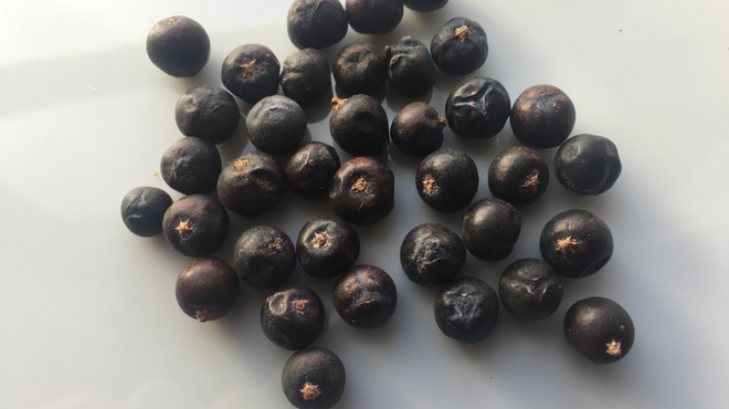 アイスバインにはローリエやブラックペッパー、クローブなどのスパイスが使われますが、なかでも重要なのが「ジュニパーベリー(ネズの実)」です。