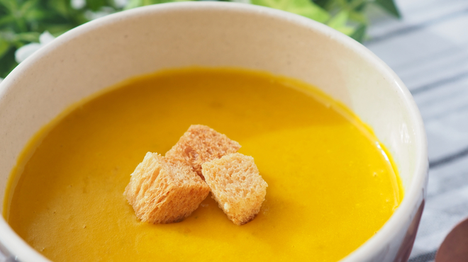 バターナッツかぼちゃは繊維が少なく、加熱するととてもなめらかでトロトロの食感になります。とくにおすすめなのが、ポタージュなどのスープ。