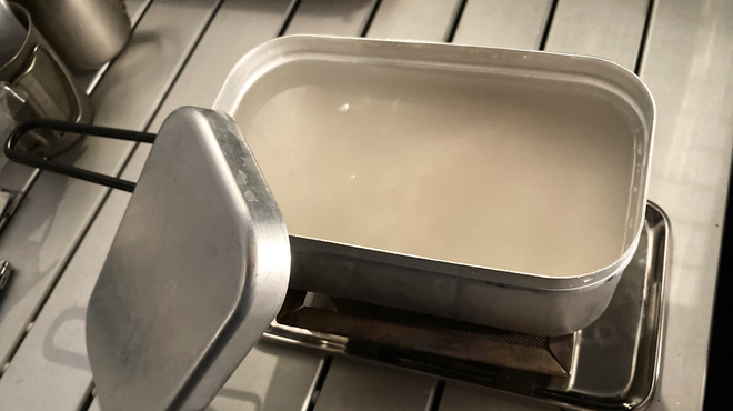 なんだか難しそうに感じますが、メスティンのシーズニングはとってもシンプル!メスティンに米のとぎ汁を入れ、10~15分煮沸しておくことでメスティンの表面に皮膜ができ、焦げ付きなどを防ぐことができるのだとか。