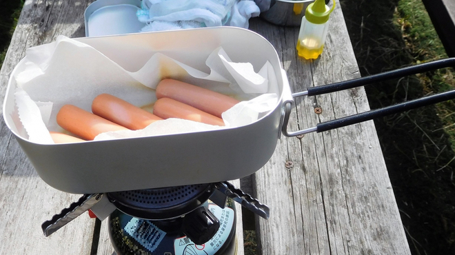 アウトドアでは朝食など、ちょっとしたものを焼くことができる調理器具があると重宝します。
