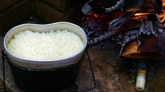 昔ながらの飯ごうは、吊り下げ調理で炊飯が得意な道具です。焚き火に吊るして炊くスタイルは、アウトドアらしい雰囲気が味わえると今も根強い人気を誇ります。