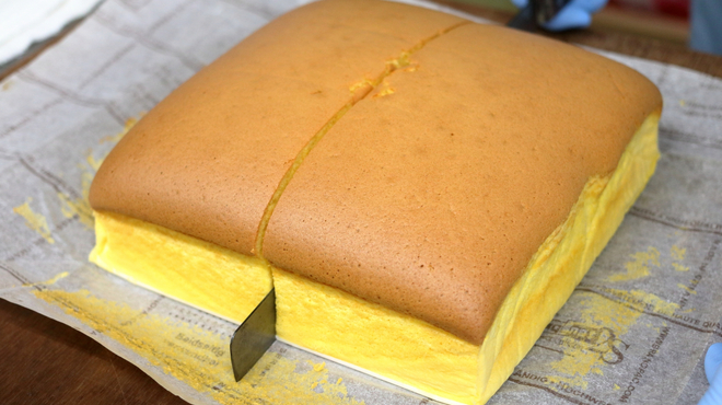 普通のカステラはそのまま焼き上げるため、密度の高い食感が楽しめます。