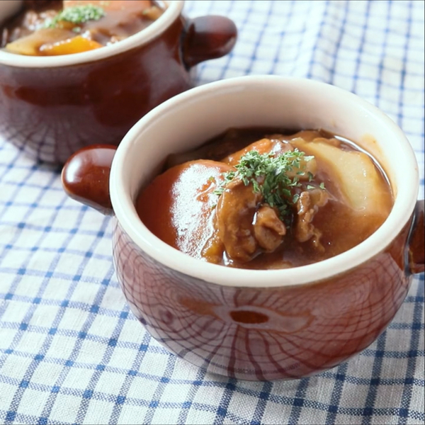 洋食の献立やおもてなしにもぴったりな、ビーフシチューのご紹介です。野菜がゴロゴロと入り、食べ応えがある一品ですよ。手間がかかるイメージがあるビーフシチューも、薄切り肉と市販のルーを使えばとても簡単に作れます。まろやかでコクのあるビーフシチューはパンにつけてもおいしいので、ぜひレパートリーに加えてみてくださいね。