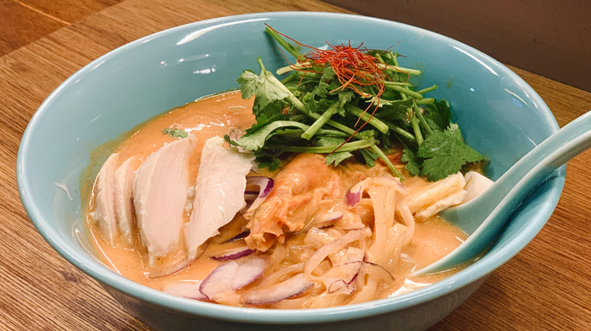 ラクサとはマレーシアやシンガポールなどで親しまれている麺料理のこと。魚介から取っただしにスパイスを効かせたスープが特徴で、一説には中国とマレーシアの食文化が融合して生まれた「ニョニャ料理」のひとつともいわれています。