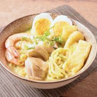 クセが少なくバランスのとれたマイルドな味わいが特徴です。具材はエビやほぐした鶏肉、錦糸卵などが定番で、ビーフンなどの細めの米麺を使うのが一般的なのだそう。食べる際にカラマンシーを絞ったり、サンバルで辛みを加えるなど、お好みの味で楽しめます。