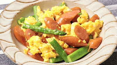アスパラ卵のレシピおすすめの30選を紹介2022.6.28アスパラ 卵のレシピをご紹介。「きちんとおいしく作れる」をコンセプトに一覧化して紹介!目次アスパラガスとウインナーと卵炒め簡単 カルボナーラリゾット風まるごとアスパラの肉巻きフライ電子レンジで簡単 茶碗蒸し簡単!さっぱり豆乳スパゲティアスパラとベーコンの厚焼き卵フライパン一つで簡単 野菜カレーパエリアシンプル!アスパラの目玉ソテー全て表示(20種類)アスパラガスとウインナーと卵炒めクラシル公式4.35(487)20分200円アスパラガス、ウインナー、溶き卵、コンソメ顆粒、塩こしょう、オリーブオイル簡単 カルボナーラリゾット風クラシル公式4.54(156)15分200円アスパラガス、牛乳、コンソメキューブ、塩、黒こしょう、ごはん、スライスチーズ、溶き卵、ロースハムまるごとアスパラの肉巻きフライクラシル公式4.62(105)30分500円アスパラガス、豚バラ肉、塩こしょう、薄力粉、溶き卵、パン粉、揚げ油、中濃ソース、レモン、パセリ電子レンジで簡単 茶碗蒸しクラシル公式4.30(239)20分200円卵、水、めんつゆ、しいたけ、アスパラガス、三つ葉簡単!さっぱり豆乳スパゲティクラシル公式4.35(69)20分400円えのき、アスパラガス、ほうれん草、豆乳、コンソメキューブ、酒、パスタ、有塩バター、サーモンアスパラとベーコンの厚焼き卵クラシル公式4.47(27)15分300円アスパラガス、卵、塩、塩こしょう、マヨネーズ、サラダ油、コンソメ顆粒、ケチャップ、薄切りハーフベーコンフライパン一つで簡単 野菜カレーパエリアクラシル公式4.55(85)30分600円米、玉ねぎ、赤パプリカ、黄パプリカ、アスパラガス、ウインナー、ゆで卵、黒こしょう、ニンニク、カレー粉、コンソメ顆粒、塩、水、オリーブオイルシンプル!アスパラの目玉ソテークラシル公式4.60(34)15分400円アスパラガス、卵、白ワイン、オリーブオイル、パルメザンチーズ、サラダ油、しょうゆ、粗挽き黒こしょう、有塩バター鯉のぼりオムライスクラシル公式4.44(59)30分300円ごはん、玉ねぎ、ピーマン、ブラウンマッシュルーム、鶏もも肉、ケチャップ、中濃ソース、鶏ガラスープの素、塩こしょう、有塩バター、塩、サラダ油、スライスチーズ、のり、アスパラガス、卵ゴロゴロ!アスパラとゆで卵のカレーマヨ和えクラシル公式4.45(30)15分400円卵、マヨネーズ、カレー粉、ハム、塩、アスパラガスゴマドレ香る!アスパラガスと水菜の卵サラダクラシル公式4.47(12)20分400円アスパラガス、水菜、白すりごま、しょうゆ、マヨネーズ、酢、砂糖、卵鶏もも肉とアスパラガスのカルボナーラ丼クラシル公式4.30(12)20分300円アスパラガス、ニンニク、ハーブソルト、卵黄、牛乳、パルメザンチーズ、白ワイン、黒こしょう、ごはん、玉ねぎ、スライスチーズ、鶏もも肉、有塩バターアスパラの温泉卵添えクラシル公式4.45(53)10分200円アスパラガス、オリーブオイル、塩、粉チーズ、温泉卵アスパラベーコンのバゲットキッシュクラシル公式4.67(23)60分500円フランスパン、アスパラガス、塩こしょう、有塩バター、モッツァレラチーズ、牛乳、生クリーム、溶き卵、コンソメ顆粒、厚切りハーフベーコンアスパラガスの肉巻きチーズフライクラシル公式4.58(58)30分400円アスパラガス、お湯、塩、豚肩ロース、プロセスチーズ、薄力粉、溶き卵、パン粉、黒こしょう、ウスターソース、ケチャップ、ベビーリーフ、揚げ油手作りタルタルソースで食べる アスパラソテークラシル公式4.49(27)15分300円アスパラガス、塩こしょう、ゆで卵、紫玉ねぎ、マヨネーズ、ピクルス、有塩バター、水、黒こしょうアスパラとミニトマトの卵炒めクラシル公式4.29(14)10分300円アスパラガス、ミニトマト、卵、有塩バター、しょうゆ、マヨネーズ、薄切りハーフベーコンあっという間に一品!アスパラとランチョンミートの卵とじクラシル公式4.35(7)10分300円卵、中華スープの素、水、はちみつ、オリーブオイル、ポークランチョンミート、めんつゆ、アスパラガスはまる美味しさ!アスパラとゆで卵のわさびマヨ和えクラシル公式4.41(13)20分200円アスパラガス、ゆで卵、わさび、マヨネーズ、プレーンヨーグルト、黒こしょう、万能ねぎスライスチーズと牛乳で!アサリとアスパラガスのクリームスープスパゲティクラシル公式4.84(8)20分300円お湯、塩、アスパラガス、玉ねぎ、ニンニク、牛乳、コンソメキューブ、あさり、スライスチーズ、黒こしょう、卵黄、スパゲティ、パルメザンチーズ、有塩バター
